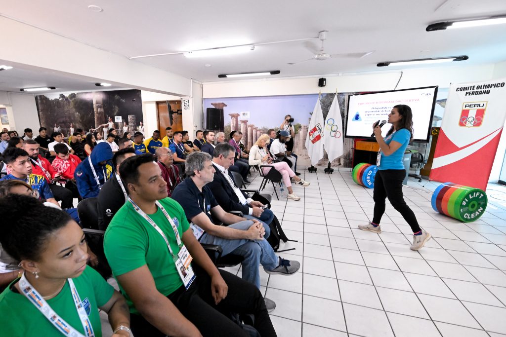 On the third day of the IWF World Youth and Junior Championships, the IWF/ITA Clean Sport Seminar took place this morning in Lima, Peru, with the attendance of around 100 participants in the event. As usual, this gathering was animated by an ITA Ambassador, Thais Cevada, a former international-level gymnast for Brazil. The IWF President Mohammed Jalood addressed the attendees with the opening speech, highlighting the importance of this kind of initiative to “decisively help in the reputation and credibility of our Sport”.